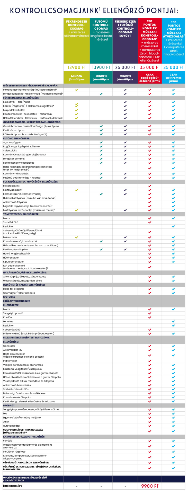2. Csak Fiat gépjárművekhez igénybe vehető csomag. Amennyiben Ön más gépjárműmárkára szeretné a csomagot igénybe venni, úgy előtte érdeklődjön hivatalos márkaszervizünkben, hogy az Ön gépjárművére a kontrollcsomag igénybe vehető-e.